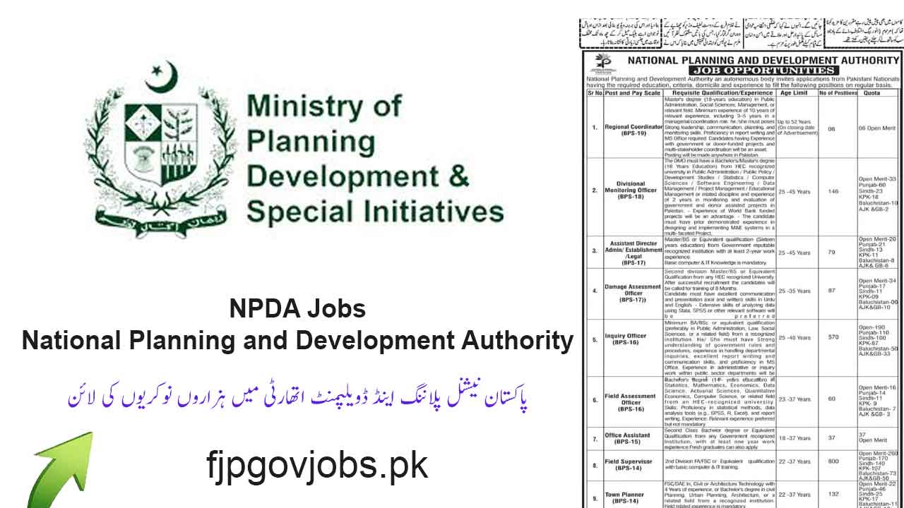 Thousands of numbers Pakistanis find  career opportunities. Right now, Pakistan National Planning and Development Authority is hiring Inquiry Officer, LDC, UDC, Divisional Monitoring Officer, Assistant Director, Filed Assessment Officer, Office Assistant, Town Planner, Sub Engineer Civil, Security Supervisor, Security Guard, Telephone Operator, Staff Driver, Naib Qasid, and also Attendant.